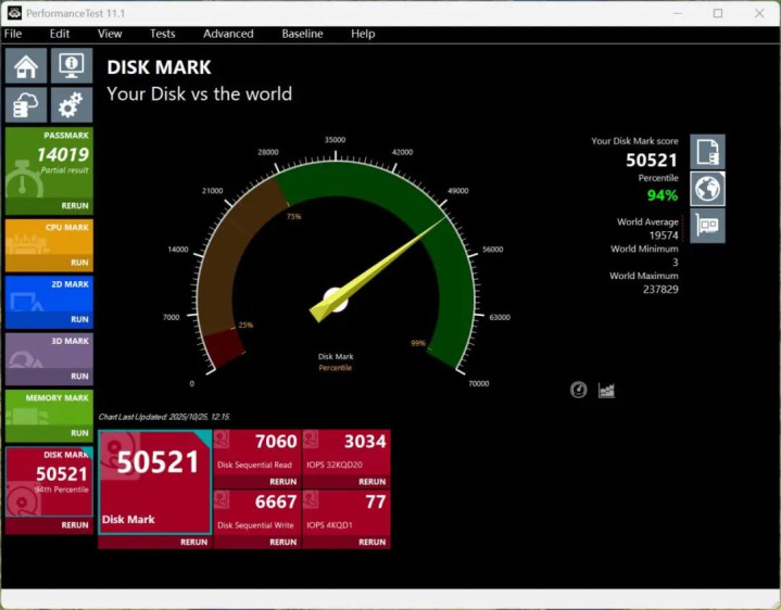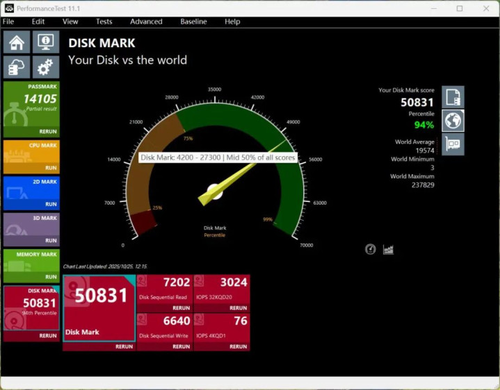 ▲在PerformanceTest 11.1磁盘性能测试中,致江波龙mSSD 1TB的测试成绩可以击败全球94%的其他存储产品。